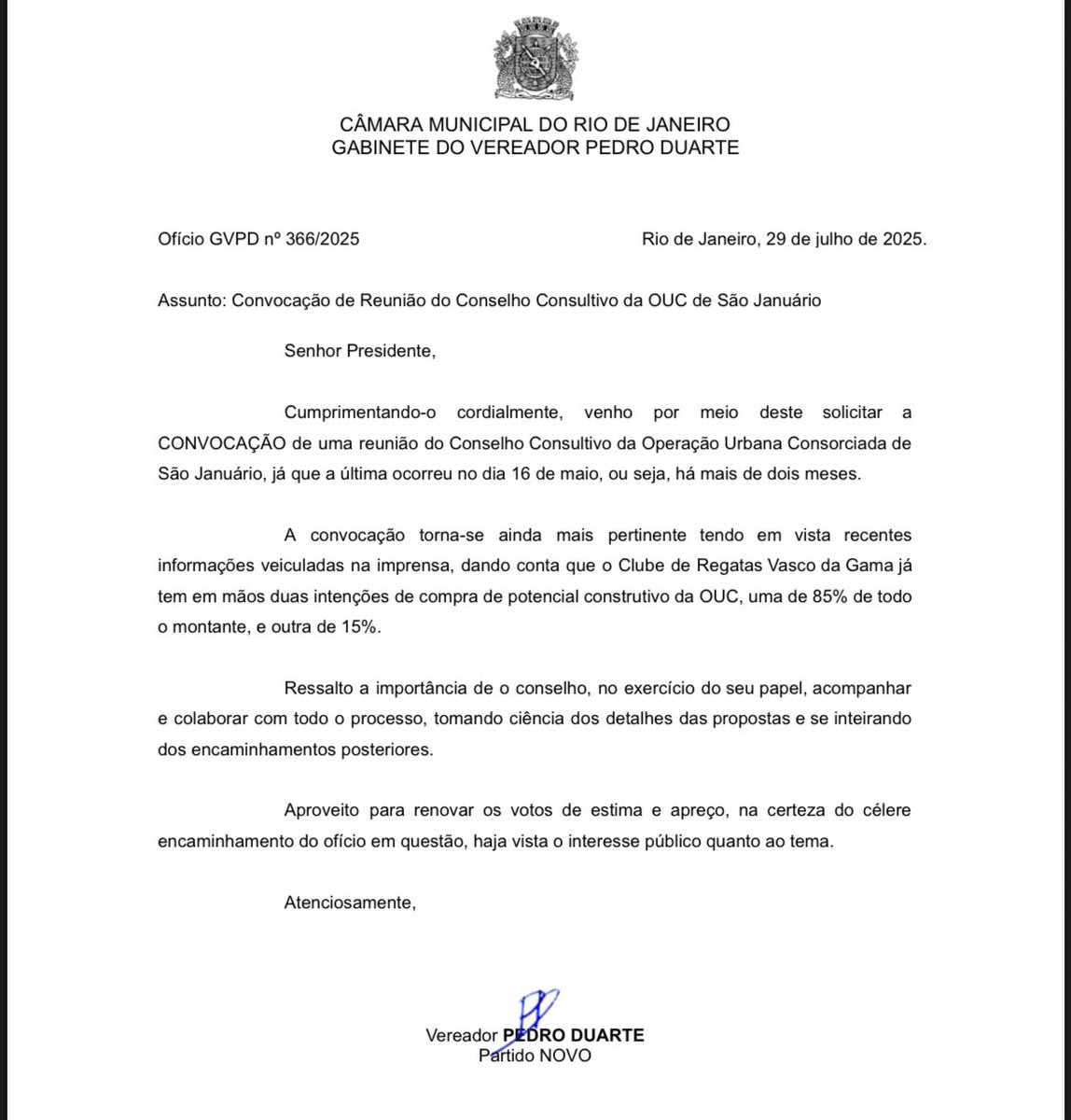 Negociação do potencial construtivo de São Januário está quase concluída. sexta-feira, 25/07/2025 às 00:28 — Em Últimas notícias