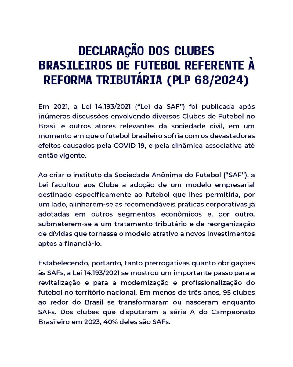 Vasco e clubes brasileiros emitem manifesto sobre Reforma Tributária terça-feira, 17/12/2024 às 20:04 — Em Últimas notícias