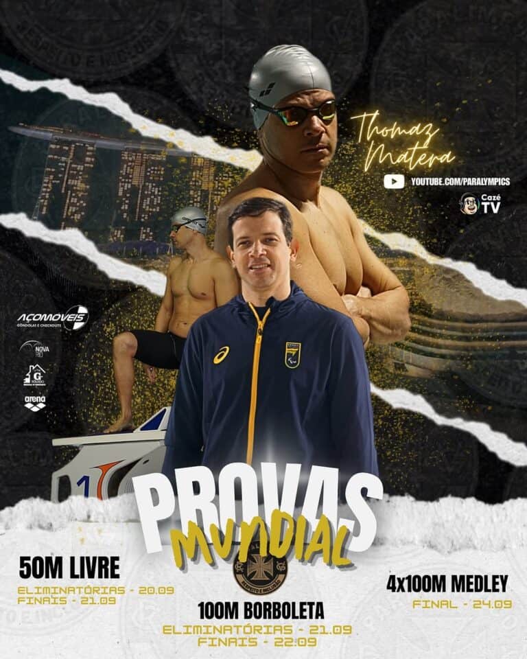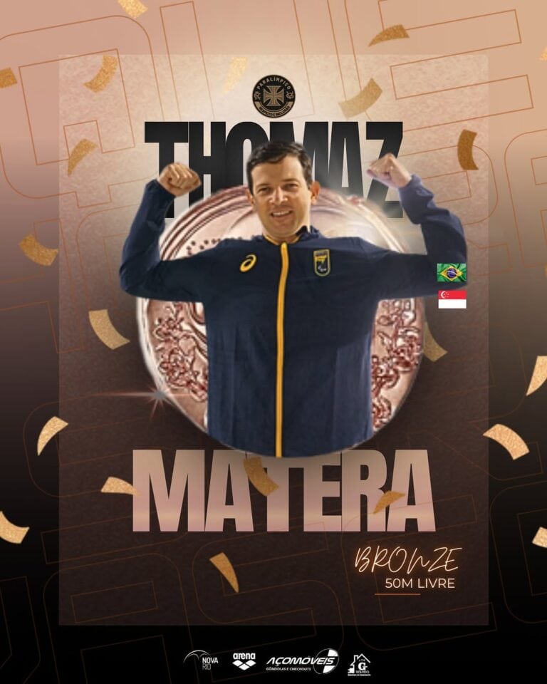 Natação Paralímpica: Thomaz Matera leva bronze nos 50m livre no Mundial de Singapura domingo, 21/09/2025 às 11:13 — Em Natação
