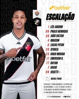 Vasco define sua formação para o duelo com o Vitória: Paulo Henrique, Sforza e David começam como titulares, enquanto Payet inicia no banco. domingo, 01/09/2024 às 17:33 — Em Últimas notícias