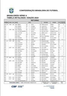 CBF divulga calendário dos próximos jogos do Brasileirão, das rodadas 26 a 29 sexta-feira, 30/08/2024 às 11:27 — Em Últimas notícias
