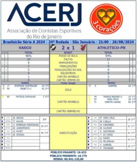 Placar do jogo: Vasco vence Athletico-PR por 2 a 1 segunda-feira, 26/08/2024 às 23:03 — Em Últimas notícias