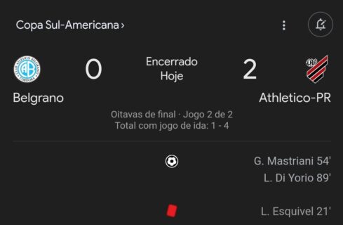 Próximo adversário do Vasco, Athletico-PR avança para as quartas da Copa Sul-Americana com vitória por 2 a 0 sobre o Belgrano quinta-feira, 22/08/2024 às 21:16 — Em Últimas notícias