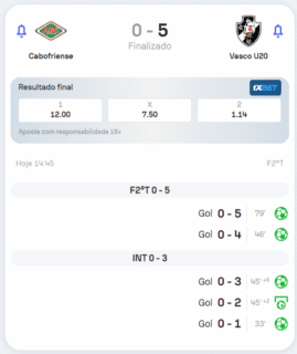 Vasco atropela Cabofriense por 5 a 0 no primeiro duelo das oitavas de final do OPG Sub-20 quinta-feira, 15/08/2024 às 17:05 — Em Últimas notícias