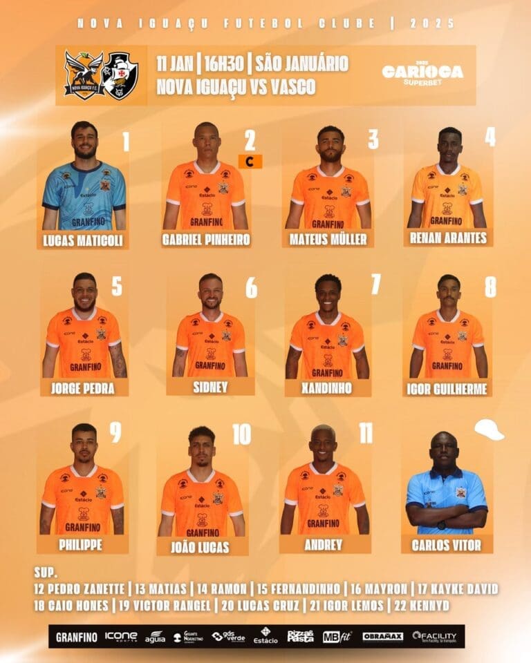 Confira a escalação do Nova Iguaçu para a partida contra o Vasco. sábado, 11/01/2025 às 15:36 — Em Últimas notícias