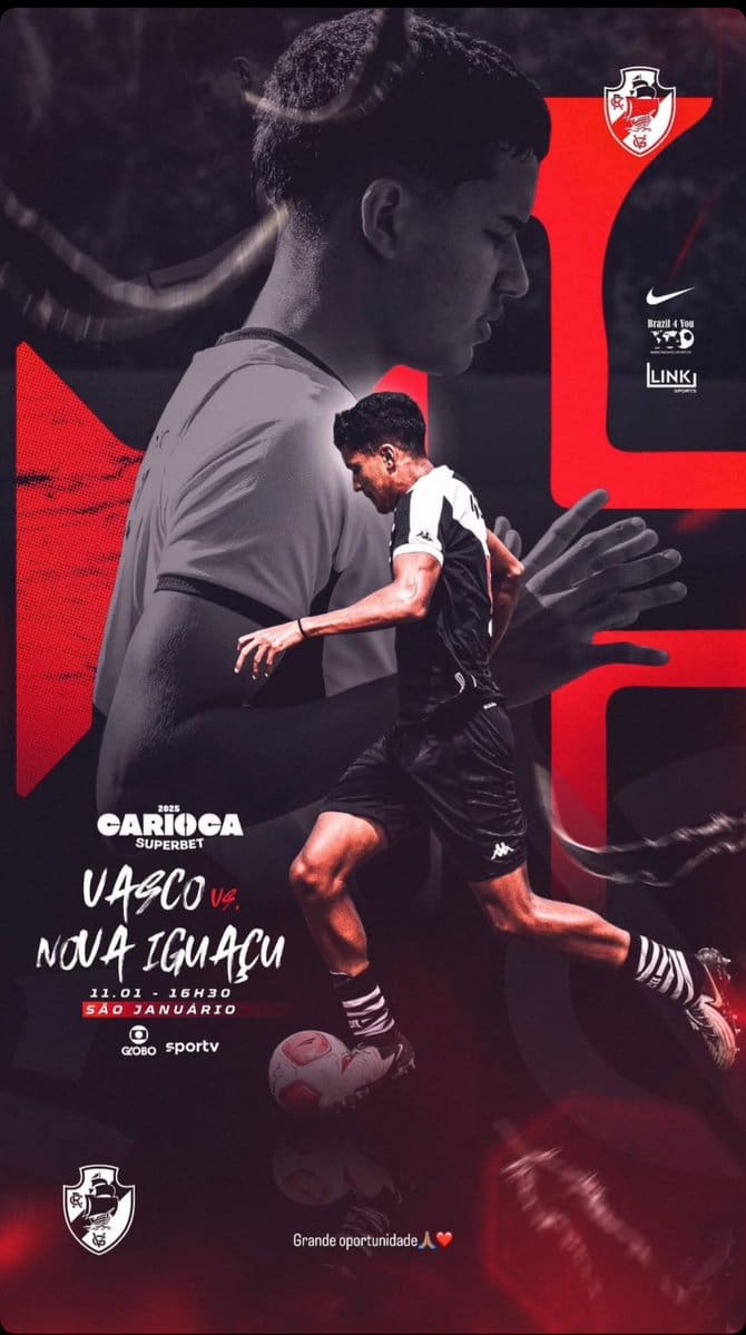 Confira a arte promocional do confronto entre Nova Iguaçu e Vasco. sábado, 11/01/2025 às 00:11 — Em Últimas notícias