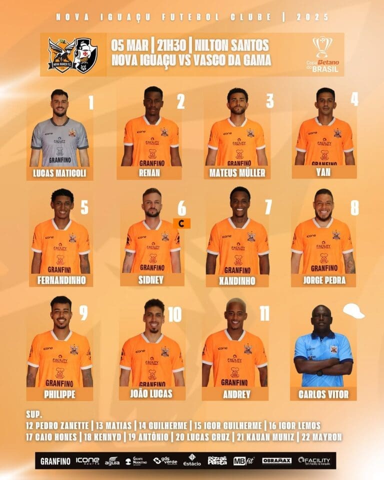 Veja a formação do Nova Iguaçu para o confronto com o Vasco. quarta-feira, 05/03/2025 às 20:38 — Em Últimas notícias