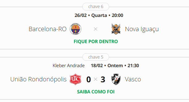 Adversário do Vasco na 2ª fase da Copa do Brasil será Barcelona-RO ou Nova Iguaçu, em partida única, no campo do adversário. quinta-feira, 20/02/2025 às 04:31 — Em Últimas notícias