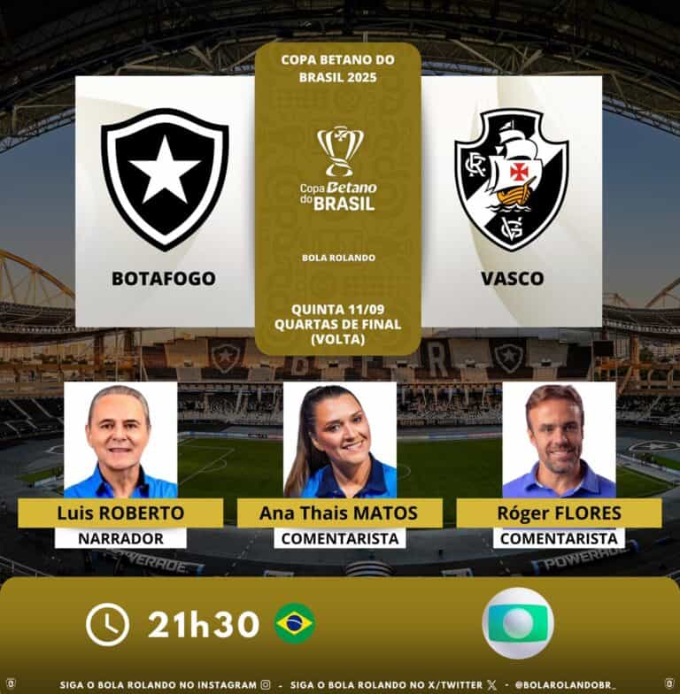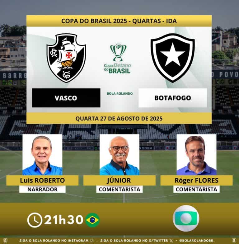 Vasco x Botafogo: profissionais da transmissão da partida da Copa do Brasil quarta-feira, 27/08/2025 às 10:45 — Em Últimas notícias