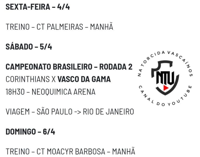 Vasco compartilha imagens do treinamento desta sexta-feira no CT do Palmeiras; confira! sexta-feira, 04/04/2025 às 15:45 — Em Últimas notícias