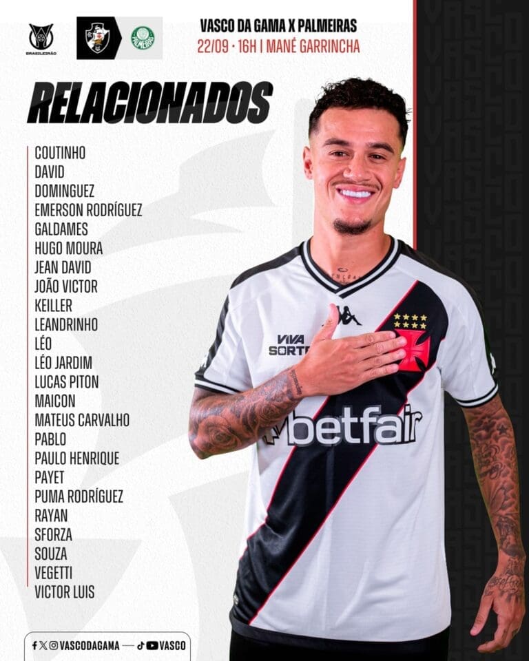 Confira os jogadores relacionados do Vasco para a partida contra o Palmeiras. sábado, 21/09/2024 às 17:01 — Em Últimas notícias