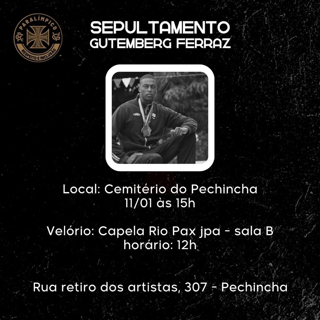 Natação Paralímpica: A despedida do ex-nadador do Vasco, Gutemberg Ferraz, ocorre neste sábado. sexta-feira, 10/01/2025 às 20:37 — Em Últimas notícias