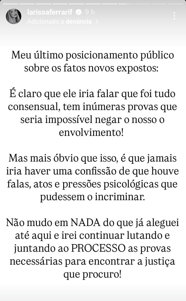 Ex-parceira de Payet afirma que não se retratará e dará continuidade à ação judicial contra o francês. sábado, 26/04/2025 às 10:57 — Em Últimas notícias