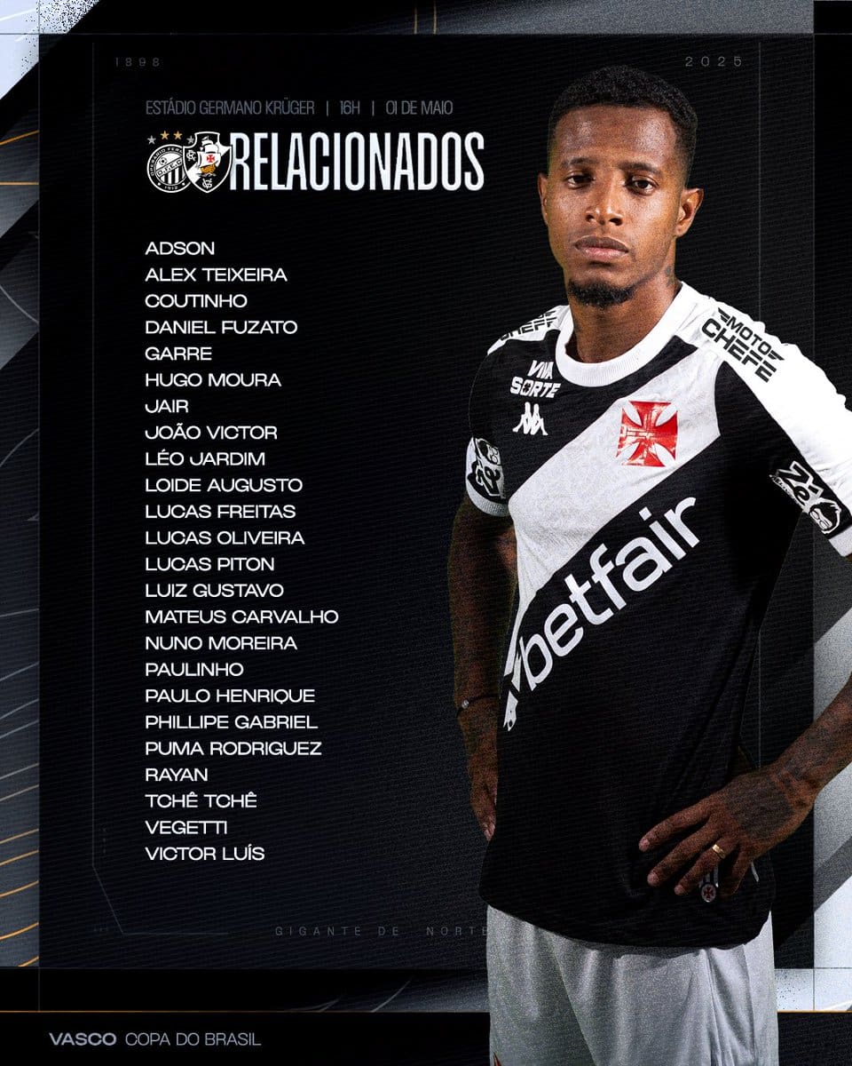 Veja a lista de jogadores do Vasco para a partida contra o Operário; Mauricio Lemos e Payet continuam fora. terça-feira, 29/04/2025 às 15:07 — Em Últimas notícias
