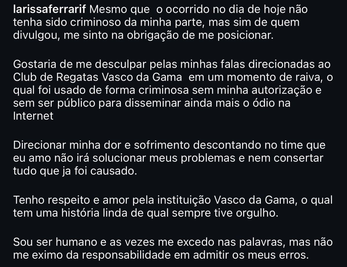 Ex-namorada de Payet se retrata após declaração de que desejava o rebaixamento do Vasco mil vezes. domingo, 04/05/2025 às 03:19 — Em Últimas notícias