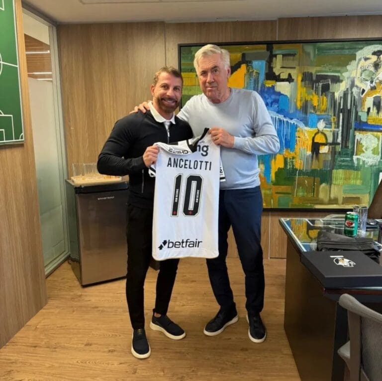 Pedrinho presenteou Carlo Ancelotti e Rodrigo Caetano com camisas personalizadas do Vasco. sexta-feira, 30/05/2025 às 18:47 — Em Últimas notícias