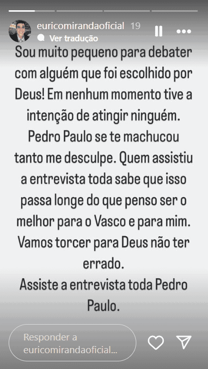 Pedrinho afirma acreditar que foi ‘escolhido por Deus’ para gerir o Vasco; assista ao vídeo domingo, 27/04/2025 às 12:26 — Em Últimas notícias