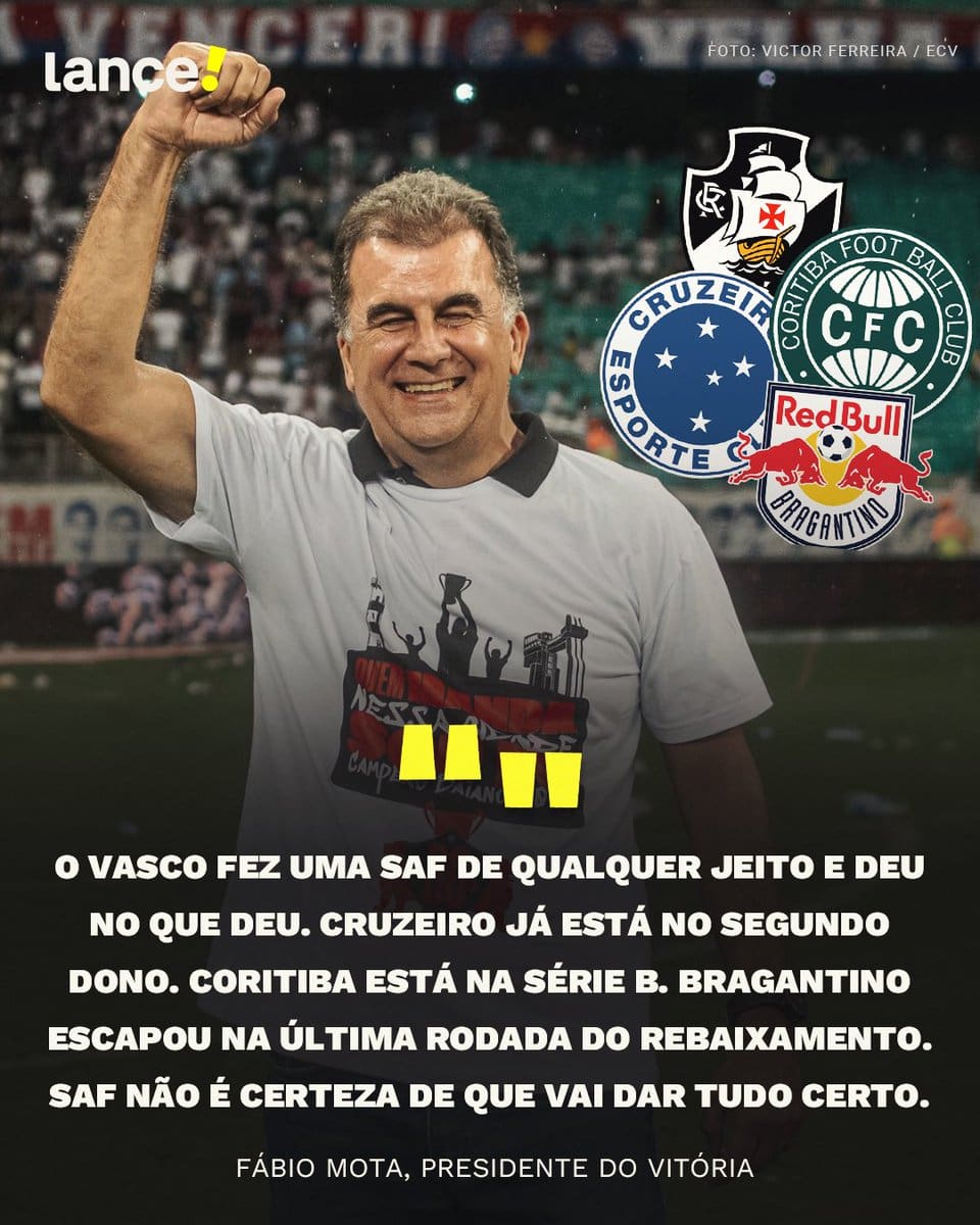 Presidente do Vitória: ‘O Vasco implementou uma SAF de forma apressada e o resultado foi o que se viu’ quinta-feira, 12/12/2024 às 20:39 — Em Últimas notícias