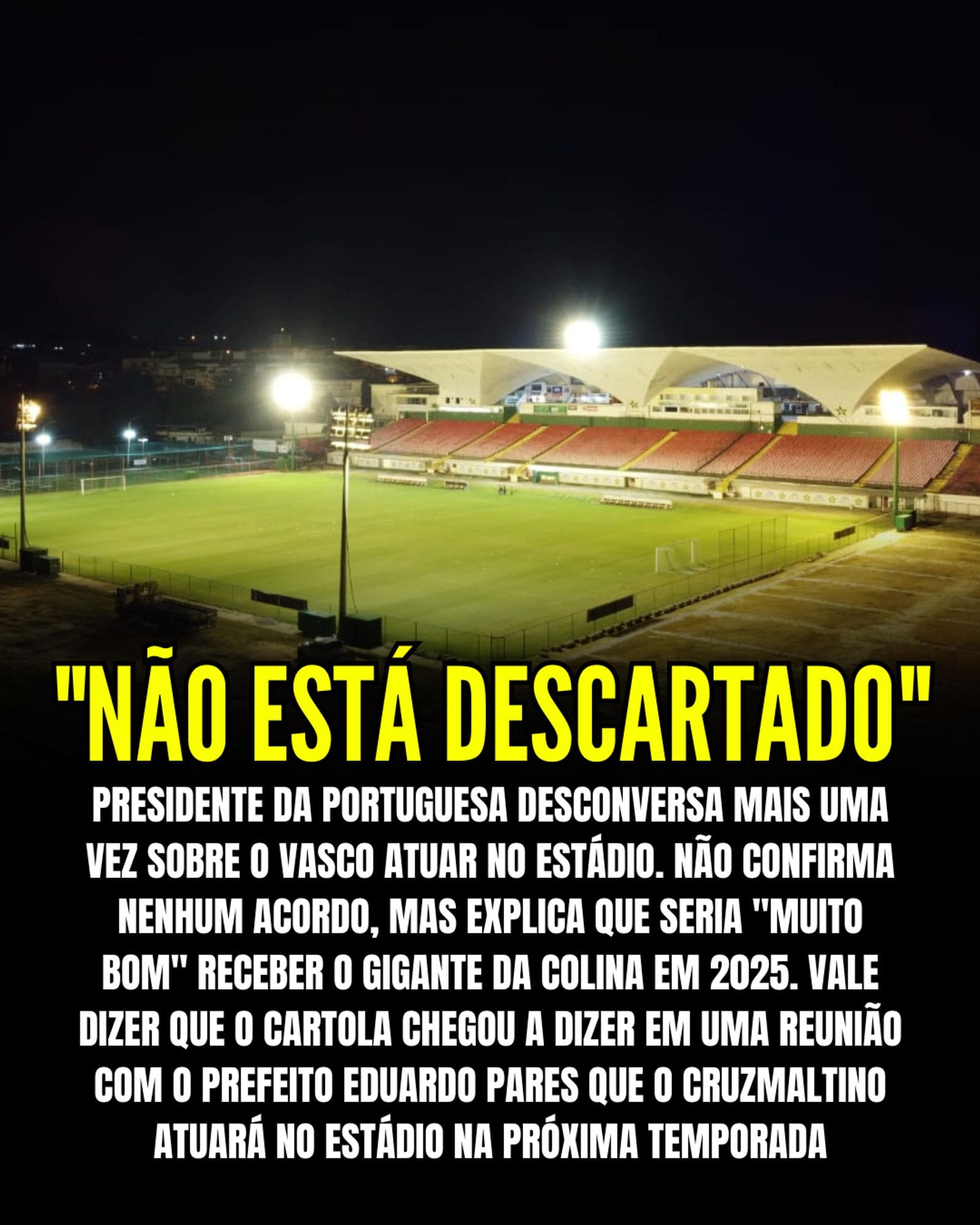 Presidente da Portuguesa não valida pacto para o Vasco disputar jogos no Luso-Brasileiro em 2025 terça-feira, 24/09/2024 às 20:01 — Em Últimas notícias
