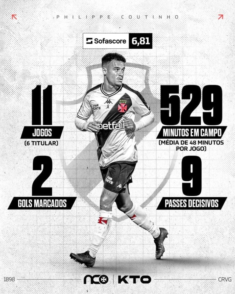 Veja as estatísticas de Philippe Coutinho desde seu retorno ao Vasco. quinta-feira, 17/10/2024 às 16:59 — Em Últimas notícias