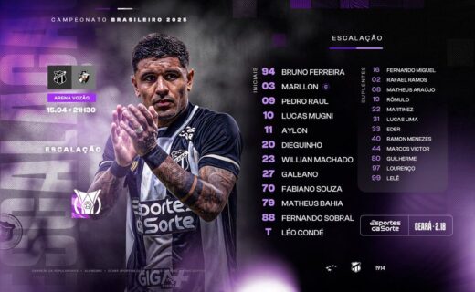 Confira a formação do Ceará para a partida contra o Vasco; ex-jogador do Vasco, Pedro Raul, inicia como titular. terça-feira, 15/04/2025 às 20:45 — Em Últimas notícias