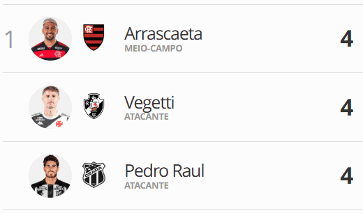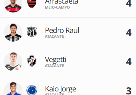 Com 4 gols, Vegetti se iguala a Arrascaeta e Pedro Raul na artilharia do Brasileiro. terça-feira, 22/04/2025 às 06:23 — Em Últimas notícias