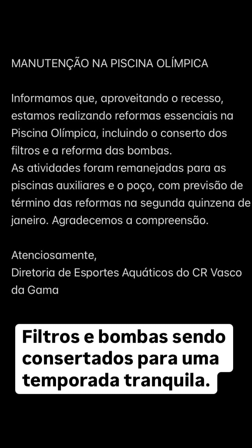 Natação: Obras em andamento na piscina olímpica de São Januário sábado, 11/01/2025 às 07:13 — Em Últimas notícias