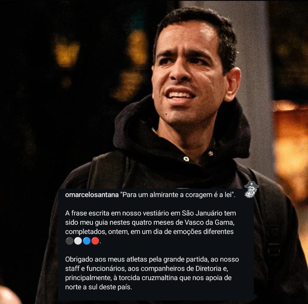 Marcelo Sant’Ana: ‘A citação que temos em nosso vestiário em São Januário tem sido meu norte durante esses quatro meses no Vasco da Gama’ terça-feira, 29/10/2024 às 14:23 — Em Últimas notícias