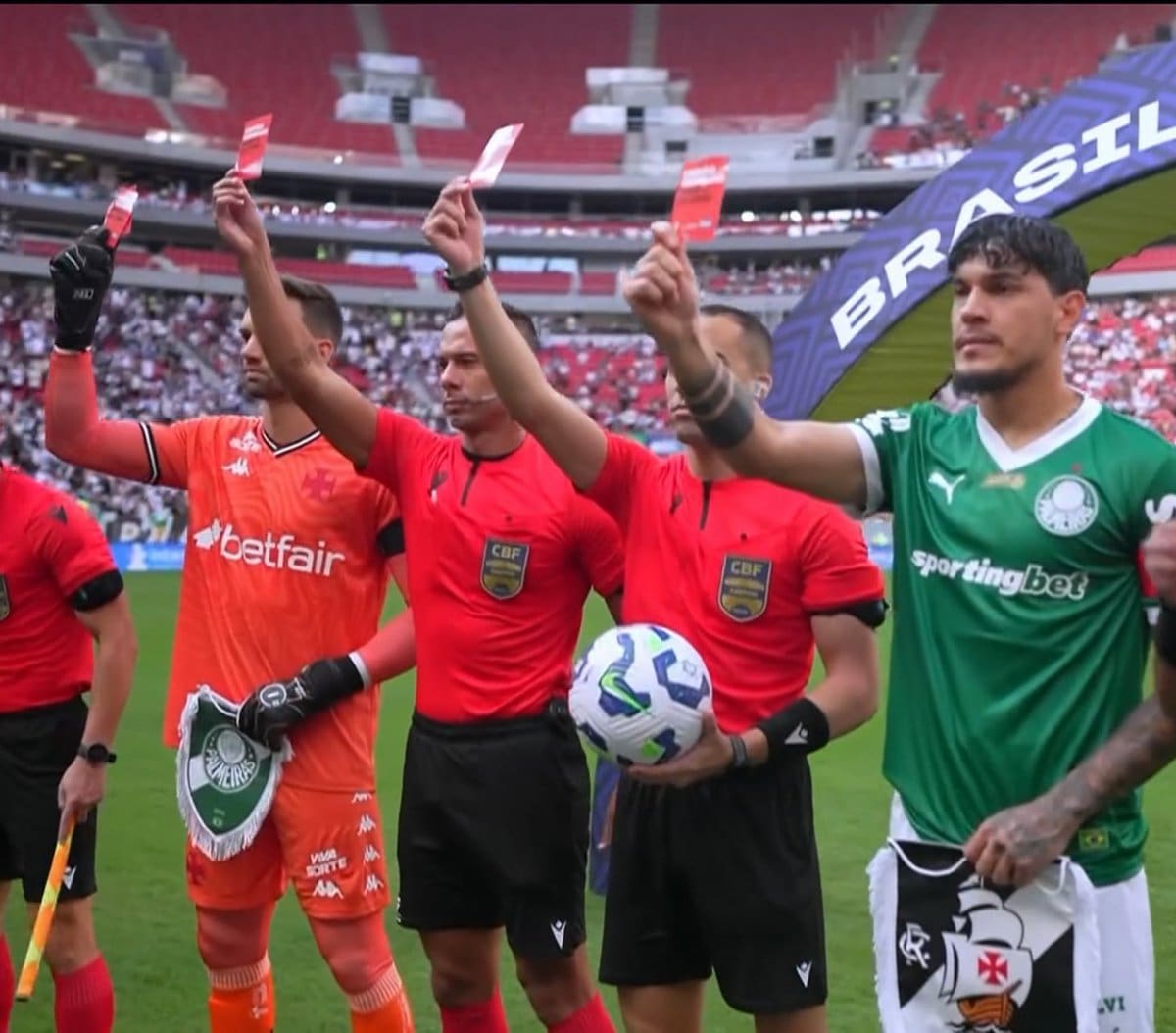 Capitães de Vasco e Palmeiras e arbitragem exibem cartão vermelho contra o racismo antes da partida; confira a foto domingo, 04/05/2025 às 16:07 — Em Últimas notícias