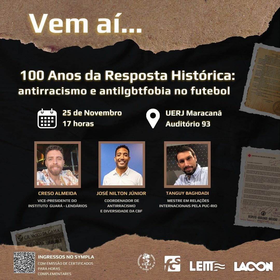 Uerj realizará o evento ‘100 Anos da Resposta Histórica: antirracismo e antiLGBTfobia no futebol’ no dia 25 de novembro. terça-feira, 12/11/2024 às 10:33 — Em Últimas notícias