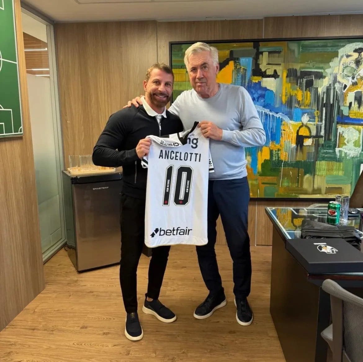 Pedrinho presenteou Carlo Ancelotti e Rodrigo Caetano com camisas personalizadas do Vasco. sexta-feira, 30/05/2025 às 18:47 — Em Últimas notícias