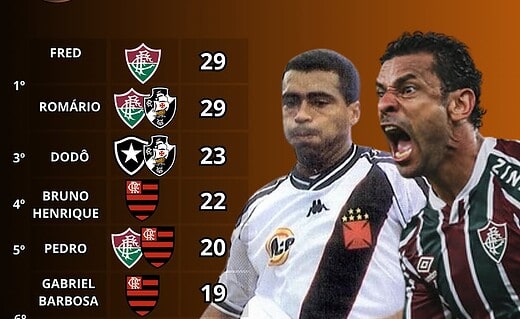 Romário é um dos maiores artilheiros dos clássicos cariocas no Século XXI, ao lado de Fred; Dodô ocupa a 3ª posição domingo, 04/01/2026 às 16:36 — Em Últimas notícias