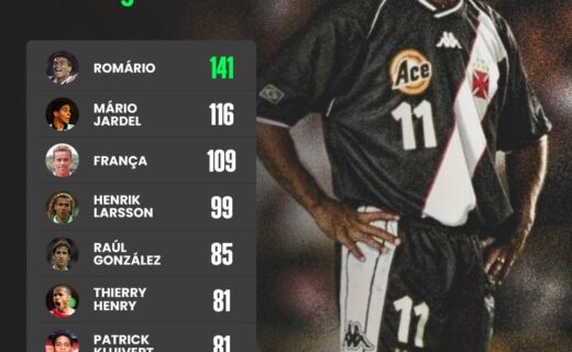 Na sua segunda passagem pelo Vasco, Romário foi o artilheiro mundial; confira os números. terça-feira, 22/04/2025 às 17:50 — Em Últimas notícias