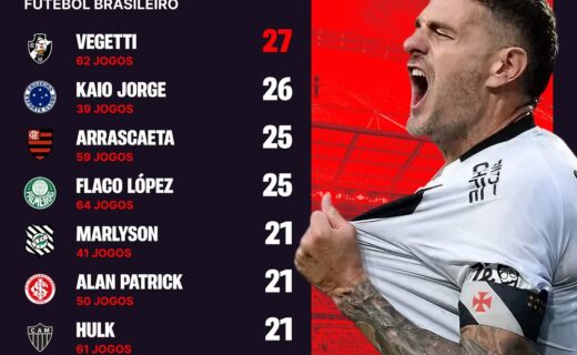 Com 27 gols, Vegetti é o artilheiro do futebol brasileiro em 2025 quarta-feira, 17/12/2025 às 07:44 — Em Últimas notícias