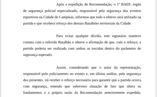 Ministério Público de São Paulo encaminhou um ofício à CBF solicitando que o jogo entre São Paulo e Vasco, que ocorrerá em Campinas, aconteça com a presença de torcida única. sexta-feira, 11/10/2024 às 13:51 — Em Últimas notícias