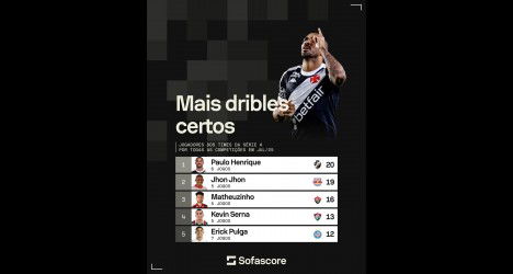 Paulo Henrique se destaca nos rankings de dribles bem-sucedidos e de duelos vencidos entre os atletas da Série A em 2025 quinta-feira, 31/07/2025 às 23:22 — Em Últimas notícias