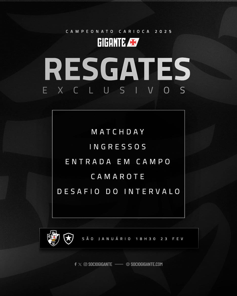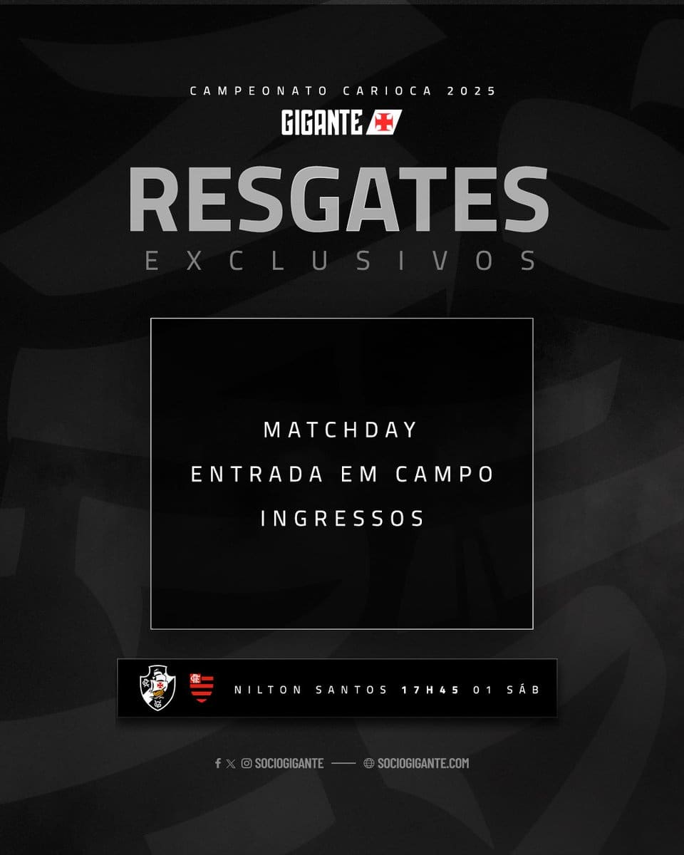 Sócios do Vasco poderão realizar resgates para a partida contra o Flamengo começando às 12h desta sexta-feira. sexta-feira, 28/02/2025 às 11:25 — Em Últimas notícias