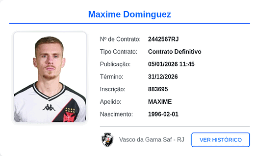 De volta ao Vasco, Maxime Dominguez é registrado no BID; confira detalhes segunda-feira, 05/01/2026 às 13:07 — Em Últimas notícias