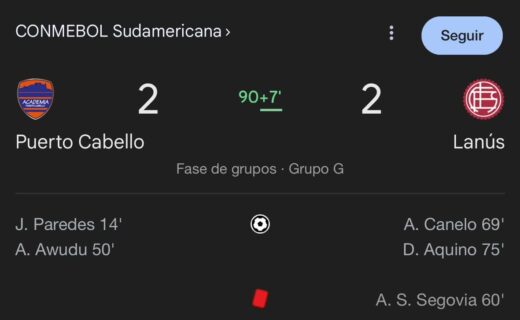 Puerto Cabello e Lanús ficam no empate em 2 a 2 na Venezuela, na fase de grupos da Sul-Americana que conta com o Vasco. quinta-feira, 03/04/2025 às 20:59 — Em Últimas notícias