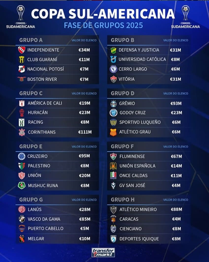 Vasco possui o quinto elenco mais valioso da fase de grupos da Copa Sul-Americana. segunda-feira, 24/03/2025 às 02:14 — Em Últimas notícias