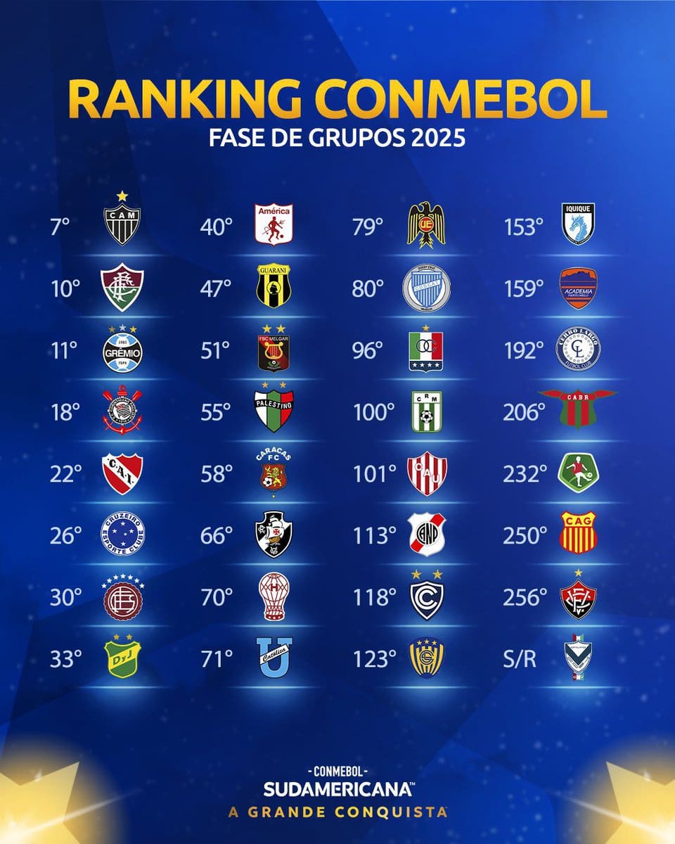 Vasco ocupa a 14ª posição no ranking da Conmebol entre as equipes que participarão da Copa Sul-Americana. domingo, 16/03/2025 às 18:13 — Em Últimas notícias