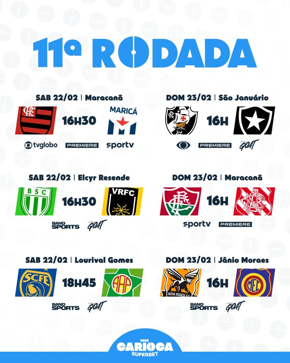Consulte as datas e horários das partidas da rodada final da Taça Guanabara. segunda-feira, 17/02/2025 às 14:50 — Em Últimas notícias