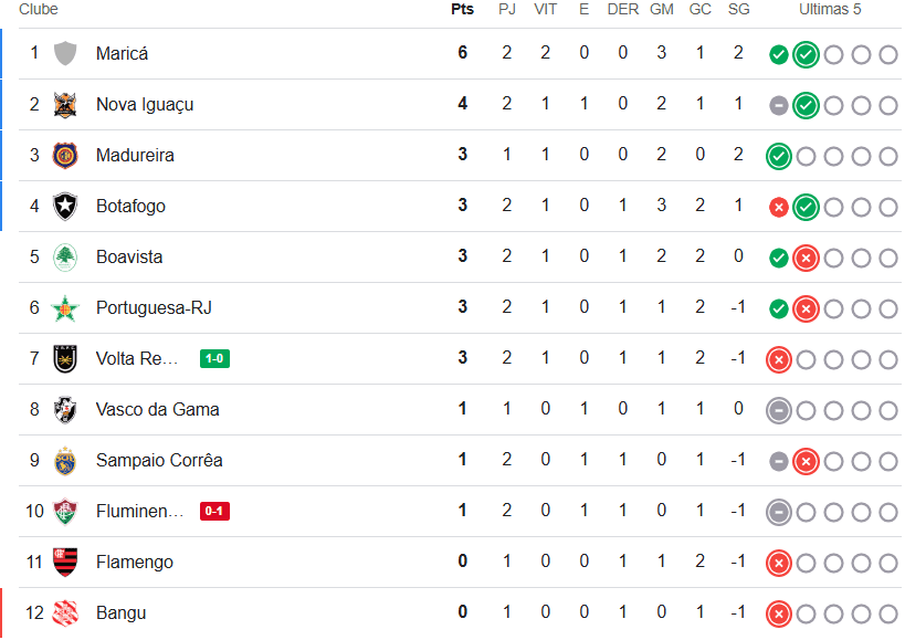 Veja a classificação da Taça Guanabara após os jogos de sábado da primeira rodada; Vasco ocupa a 4ª posição. sábado, 11/01/2025 às 21:15 — Em Últimas notícias