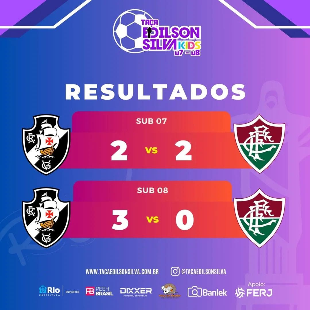 Pela Taça Rio, o Vasco empata em 2 a 2 com o Fluminense no Sub-07 e conquista uma vitória de 3 a 0 no Sub-08. domingo, 17/11/2024 às 20:45 — Em Últimas notícias