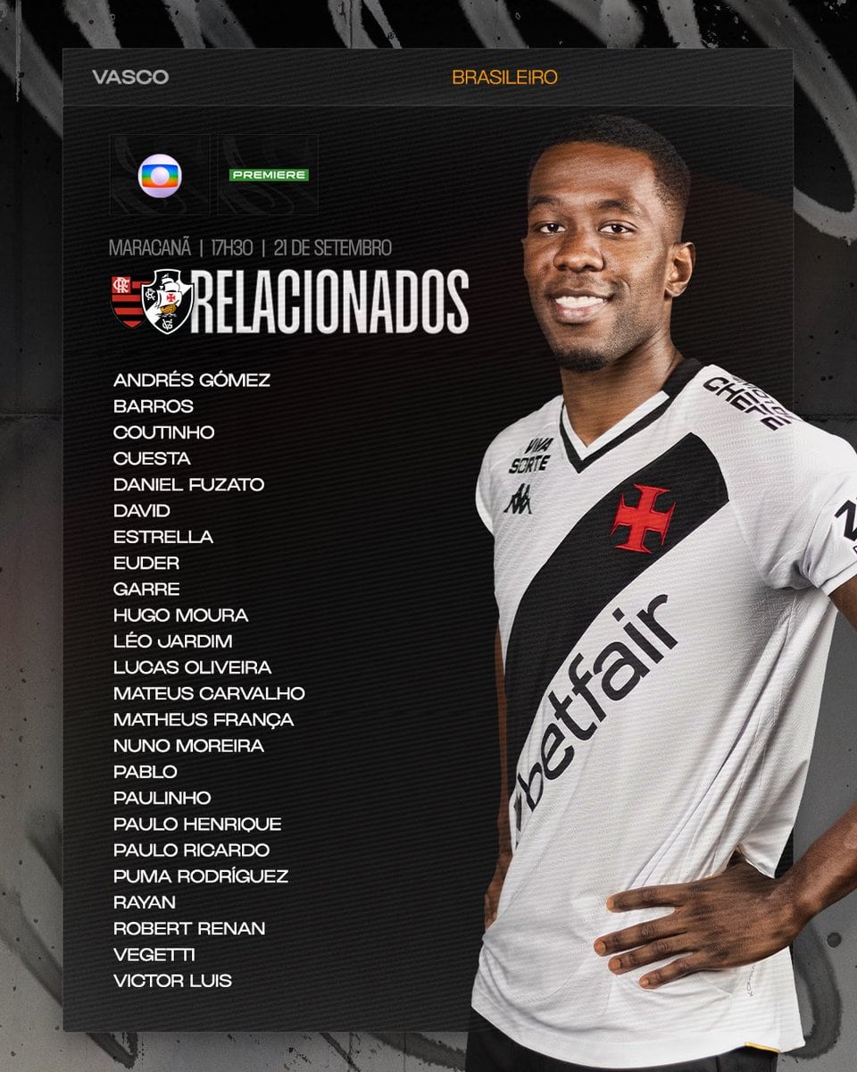 Vasco divulga os relacionados para o jogo contra o Flamengo e atualiza as situações de Piton e Tchê Tchê. domingo, 21/09/2025 às 14:44 — Em Últimas notícias