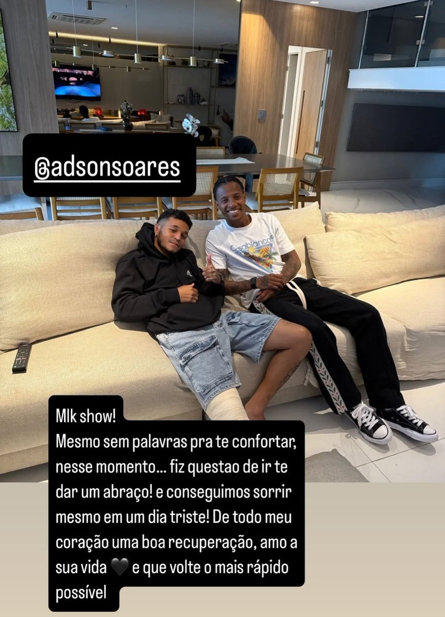 Tchê Tchê fez uma visita a Adson para oferecer suporte ao atacante machucado. segunda-feira, 07/07/2025 às 17:47 — Em Últimas notícias
