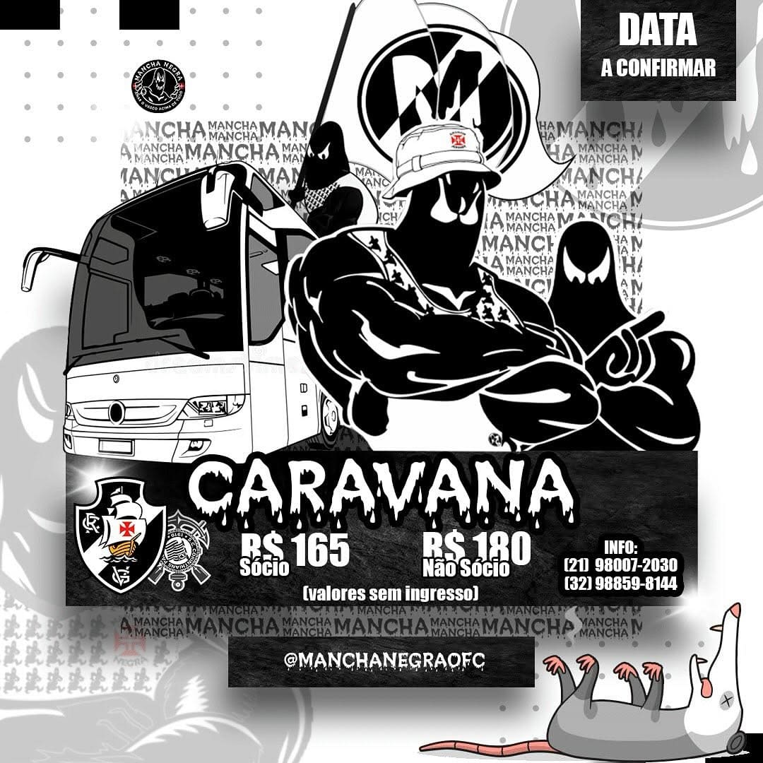 Mancha Negra revela programação de caravana para o jogo Corinthians x Vasco, que ocorrerá em São Paulo, em abril. sábado, 15/03/2025 às 21:21 — Em Últimas notícias