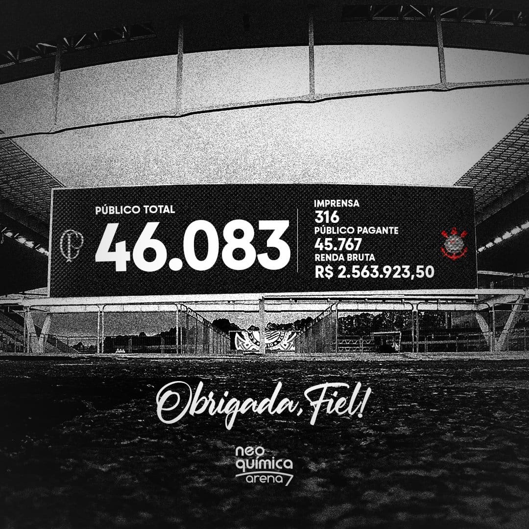 Neo Química Arena acolheu um público de 46.083 espectadores para o confronto entre Corinthians e Vasco. domingo, 24/11/2024 às 17:58 — Em Últimas notícias
