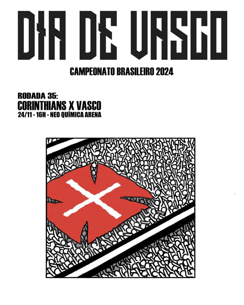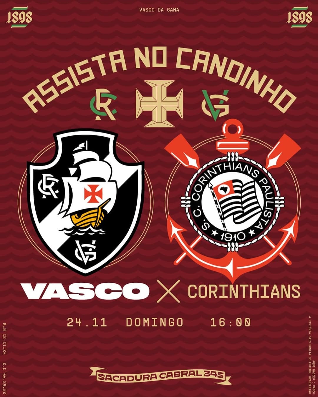 Confira a arte promocional do jogo Corinthians x Vasco. domingo, 24/11/2024 às 00:18 — Em Últimas notícias