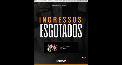 TICKETS PARA VASCO VS CORINTHIANS JÁ ESTÃO ESGOTADOS quarta-feira, 20/08/2025 às 13:02 — Em Últimas notícias